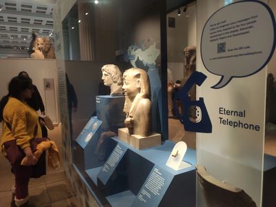 The installation accompanies new display Four Lives, which invites visitors to meet four individuals who lived in the interconnected world of the ancient Mediterranean over two thousand years ago. The themes of identity, migration and belonging all provided inspiration for Eternal Telephone.